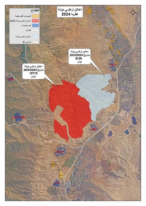 في هذا السياق، يوضح مدير عام التوثيق في هيئة مقاومة الجدار والاستيطان أمير داود، أن سلطات الاحتلال منذ مطلع العام الحالي ذهبت للحدود القصوى في كل إجراءاتها الرامية للاستيلاء على الأراضي الفلسطينية، وخاصة في مناطق الأغوار ومحيطها، وهي بذلك تسجّل أرقاما قياسية، فمنذ مطلع 2024 تم الاستيلاء على حوالي 24 ألف دونم تحت مسمى "أراضي الدولة"، فيما بلغ مجمل ما تم الاستيلاء عليه تحت المسميات المختلفة 39 ألف دونم منذ بداية العام.