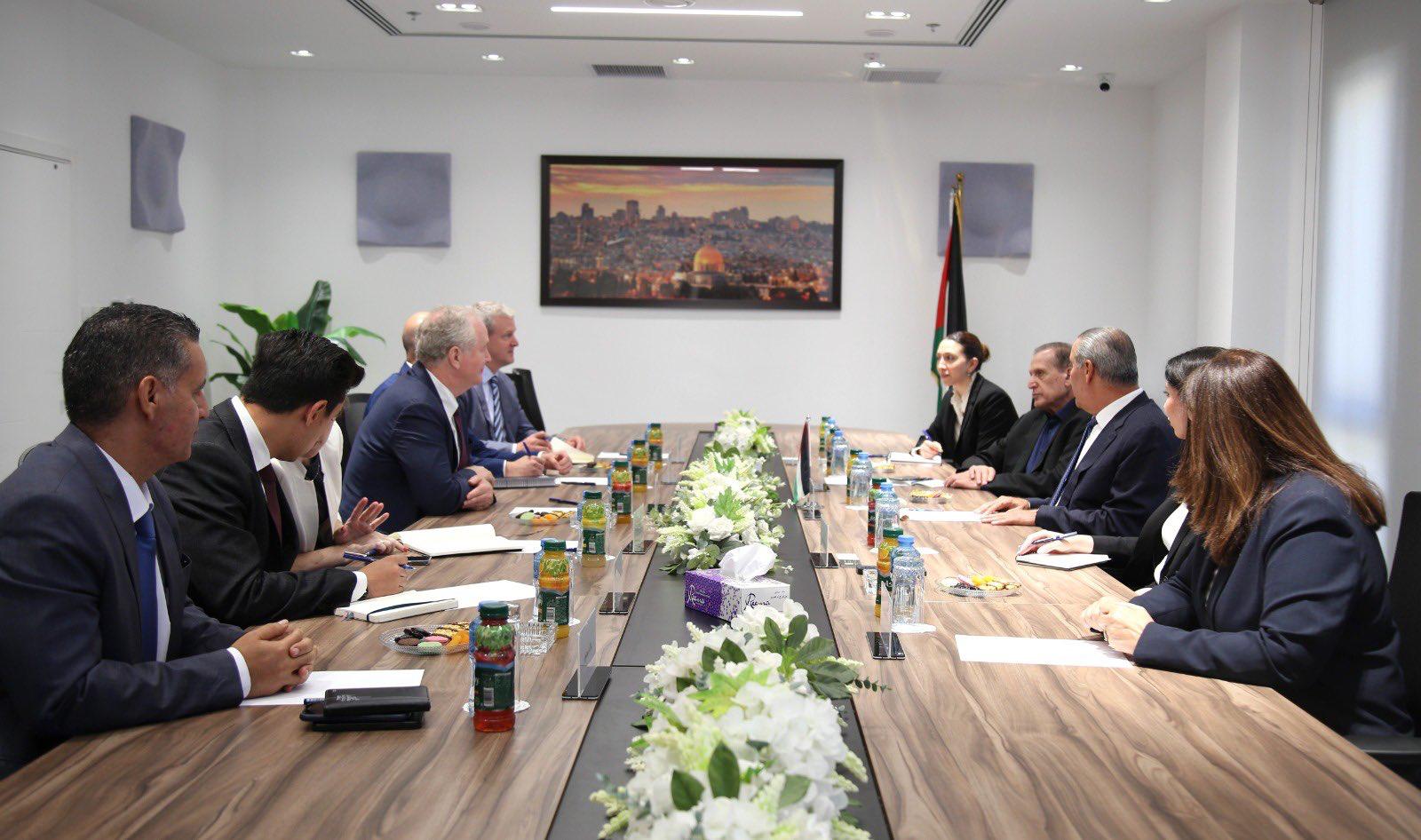 رام الله 18-7-2024 وفا- التقى أمين سر اللجنة التنفيذية لمنظمة التحرير الفلسطينية حسين الشيخ، اليوم الخميس، النائب عن الحزب الديمقراطي لدى مجلس الشيوخ الأميركي، السيناتور كريس فان هولن، بحضور الناطق باسم الرئاسة نبيل أبو ردينة، ووزيرة الدولة لشؤون وزارة الخارجية والمغتربين فارسين أغابكيان شاهين.