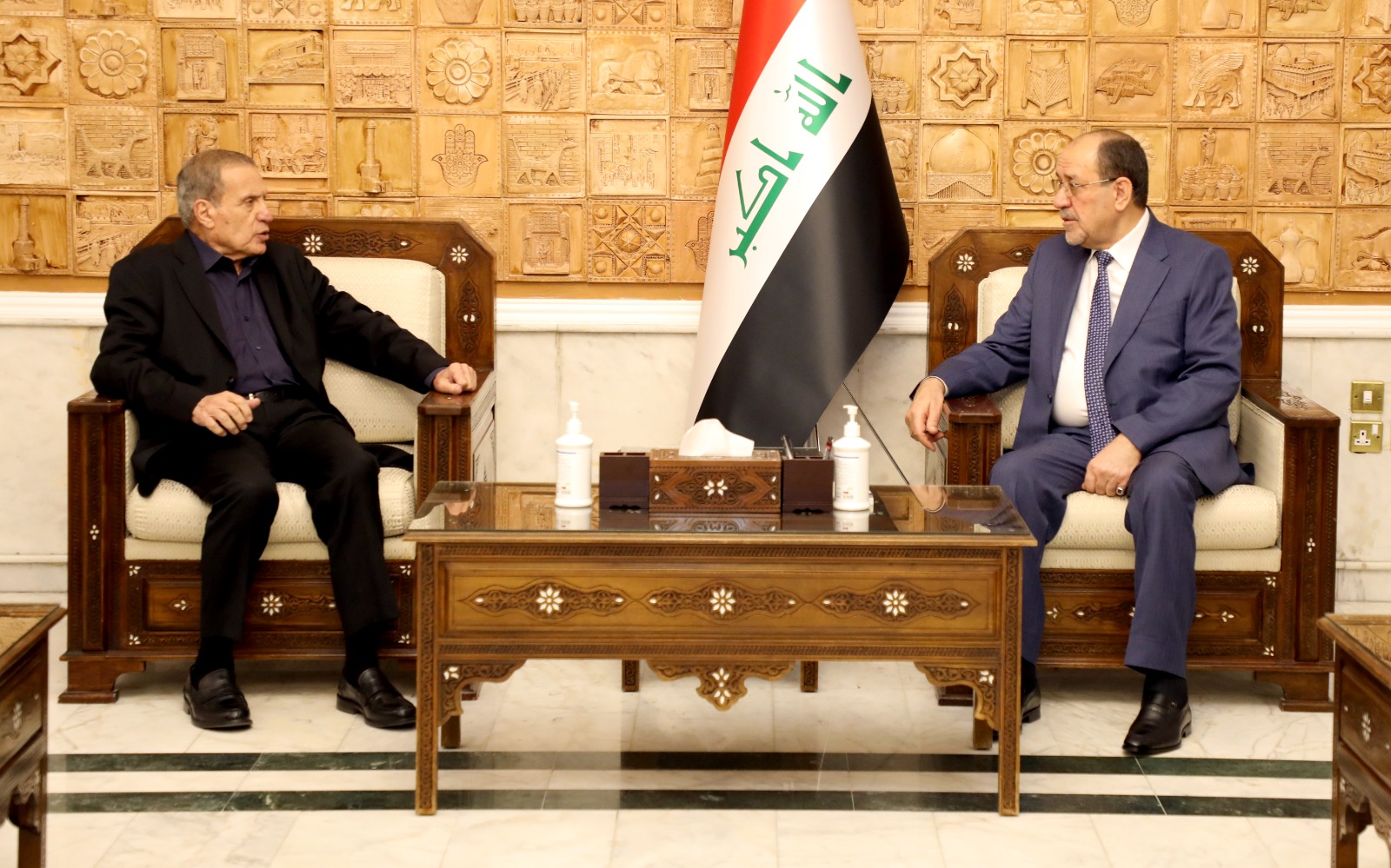 بغداد 2-7-2024 وفا- التقى الناطق الرسمي باسم الرئاسة، عضو اللجنة المركزية لحركة "فتح" نبيل أبو ردينة، اليوم الثلاثاء، في العاصمة العراقية بغداد، رئيس الوزراء العراقي الأسبق، نوري المالكي، بحضور سفير دولة فلسطين لدى العراق أحمد الرويضي.