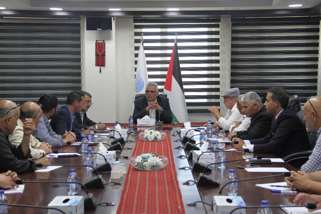 رام الله 2-7-2024 وفا- بحث رئيس سلطة المياه مازن غنيم، اليوم الثلاثاء، مع رئيس وأعضاء مجلس الخدمات المشترك لقرى جنوب شرق نابلس، جملة من الاحتياجات والإشكاليات التي يواجهها المجلس في مناطق خدماته.