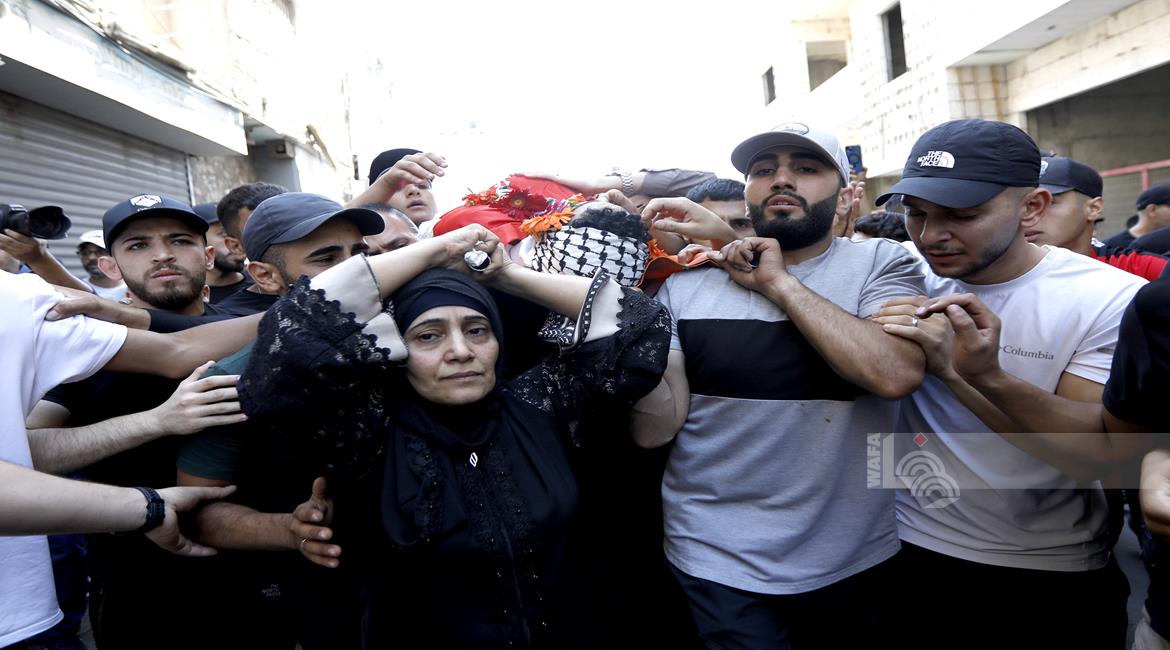 القدس 24-7-2024 وفا- شيع المئات من أبناء شعبنا في محافظة القدس، اليوم الأربعاء، جثمان الشهيد أحمد أصلان (20 عاما)، الذي ارتقى برصاص قوات الاحتلال الإسرائيلي خلال اقتحام مخيم قلنديا شمال القدس المحتلة فجر اليوم.