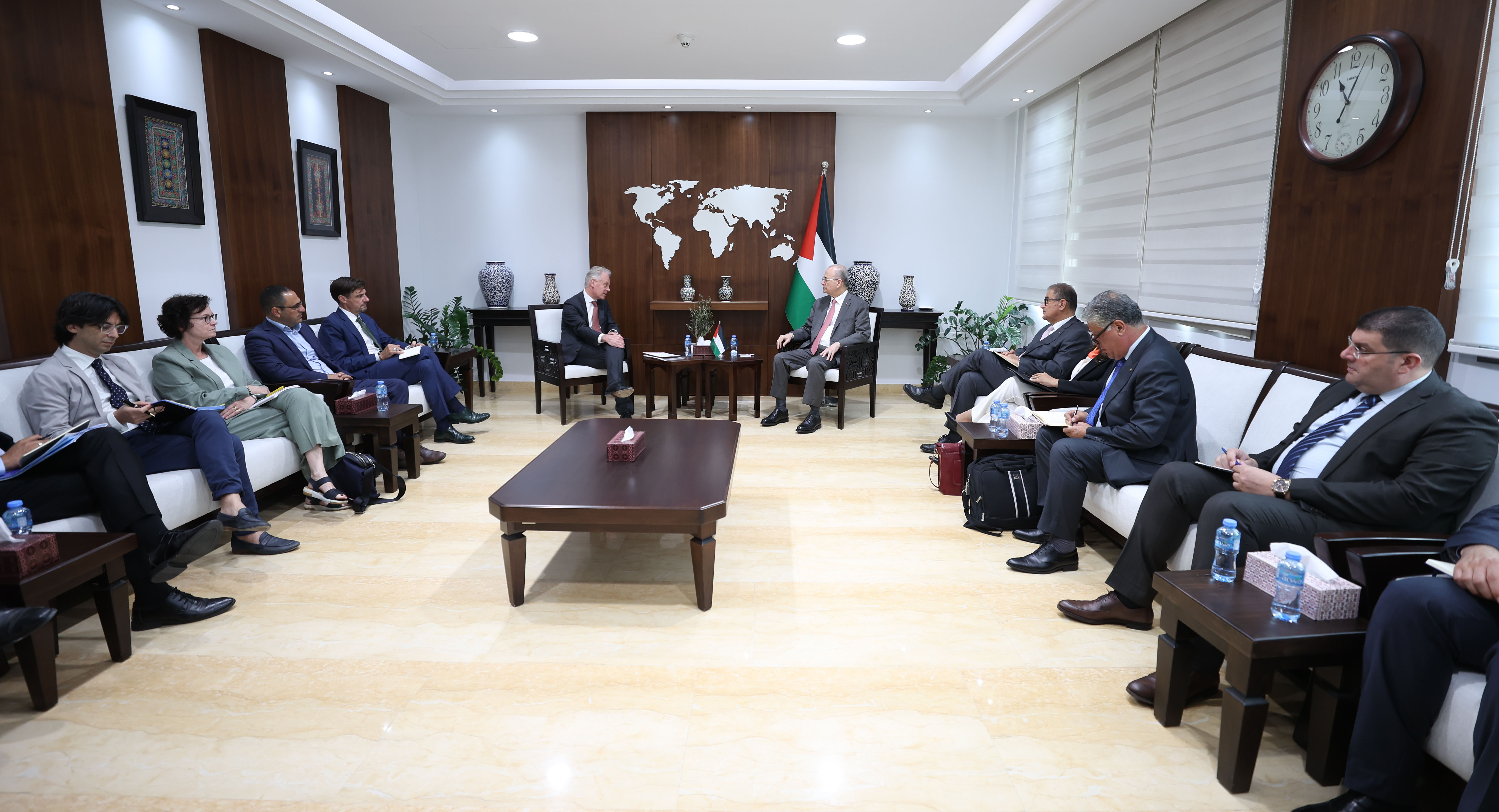 رام الله 3-7-2024 وفا- بحث رئيس الوزراء  محمد مصطفى، اليوم الأربعاء في مكتبه برام الله، مع مدير عام مفاوضات الجوار والتوسع في المفوضية الأوروبية غيرت يان كوبمان،  تعزيز التعاون وسبل دعم مبادرات الحكومة التنموية لقطاعات الطاقة، الصحة، الحماية الاجتماعية، والتمكين الاقتصادي.
