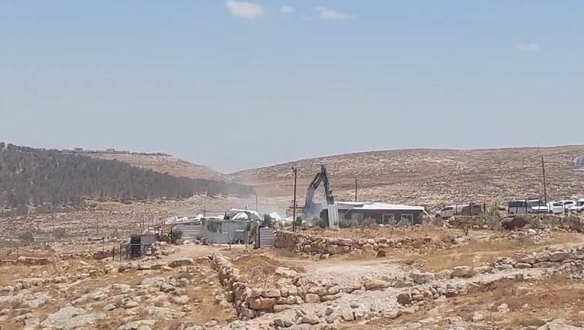 الخليل 8-7-2024 وفا- هدمت قوات الاحتلال الإسرائيلي، اليوم الاثنين، مدرسة خلة عميرة الأساسية المختلطة، شرق يطا جنوب الخليل.