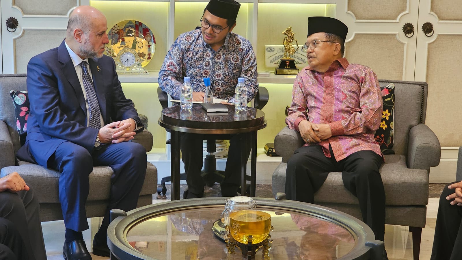 جاكرتا 10-8-2024 وفا- بحث قاضي قضاة فلسطين، مستشار الرئيس للشؤون الدينية والعلاقات الإسلامية محمود الهباش، مع رئيس هيئة المساجد في جمهورية إندونيسيا، نائب الرئيس الإندونيسي الأسبق يوسف قالا، سبل تعزيز التعاون بين البلدين في مجالات الدعوة والإرشاد وتبادل الخبرات.