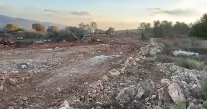 سلفيت 11-8-2024 وفا- جرف مستعمرون أراضي واقتلعوا أشجار زيتون في قرية ياسوف، شرق سلفيت.