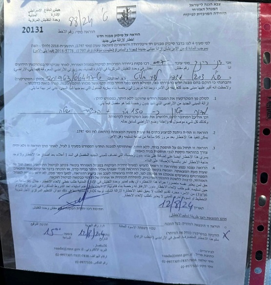 وشملت هذه الإجراءات ملاحقة عمال البناء، والاستيلاء على معدات البناء والمركبات، وتسليم أصحاب الأراضي إخطارات وقف العمل والبناء، وكل ذلك ضمن سلسلة طويلة من السياسات التعسفية التي تهدف إلى حرمان الفلسطينيين من توسعهم العمراني، وفرض واقع جديد على الأرض يعزز التوسع الاستعماري ويعزل القرى الفلسطينية بعضها عن بعض، ويعرقل جهود البناء والتطوير.
