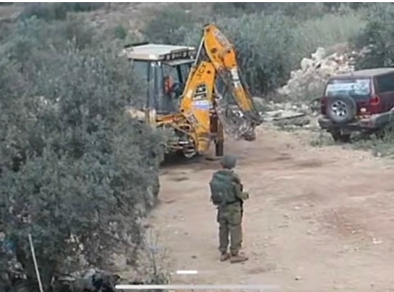 لحظة استيلاء قوات الاحتلال على جرافة في بلدة دير بلوط غرب سلفيت