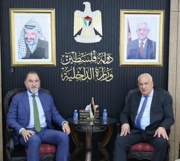 رام الله 14-8-2024 وفا- بحث وزير الداخلية اللواء زياد هب الريح، اليوم الأربعاء، مع القنصل اليوناني العام ديمتريوس أنجيلوسوبولوس، تعزيز التعاون والعلاقات الثنائية بين البلدين في القضايا ذات الاهتمام المشترك.