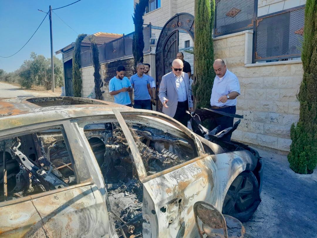 قلقيلية 17-8-2024 وفا- تفقد وزير الحكم المحلي سامي حجاوي، اليوم السبت، قرية جيت شرق قلقيلية، واطلع على حجم الأضرار والخراب فيها جراء هجوم المستعمرين المسلحين عليها الخميس الماضي، والذي أسفر عن استشهاد الشاب رشيد سدة وإصابة عدد آخر، وإحراق منازل ومركبات.
