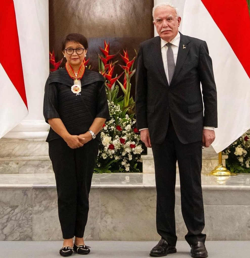 جاكرتا 20-8-2024 وفا- قلد رئيس دولة فلسطين محمود عباس، وزيرة الخارجية الإندونيسية ريتنو مارسودي نجمة الاستحقاق من وسام دولة فلسطين، تقديراً لجهودها في الدفاع عن الحقوق الفلسطينية.