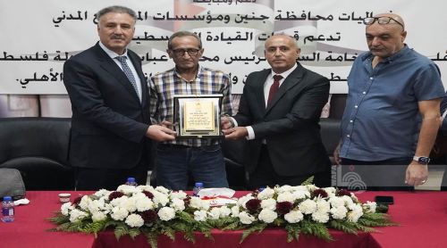 وكرم المحافظ أبو الرب، والوزير عساف، مدير مكتب وكالة "وفا" للأنباء في جنين الصحفي ثائر أبو بكر، بعد انتهاء عمله وخروجه للتقاعد.