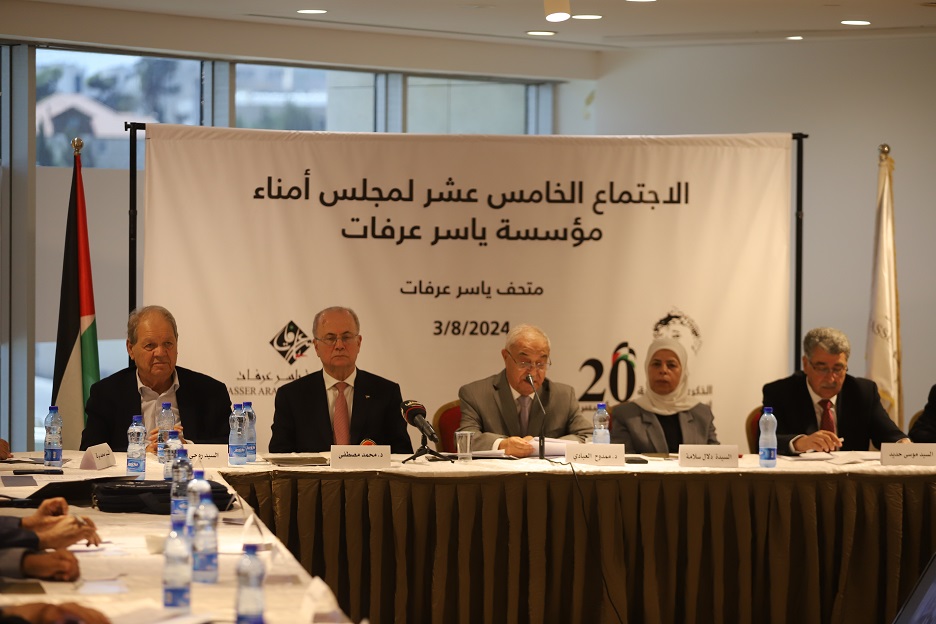 ونقل رئيس الوزراء محمد مصطفى، ممثل الرئيس محمود عباس -الرئيس الفخري للمؤسسة- في مستهل الاجتماع، تحيات الرئيس وتقديره لمؤسسة ياسر عرفات وعملها، وتمنياته بنجاح الاجتماع.