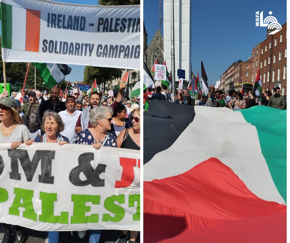 دبلن 31-8-2024 وفا- شهدت العاصمة الأيرلندية دبلن، اليوم السبت، تظاهرة حاشدة تنديدًا بالعدوان الإسرائيلي على قطاع غزة، والضفة الغربية، ونصرة للشعب الفلسطيني.
