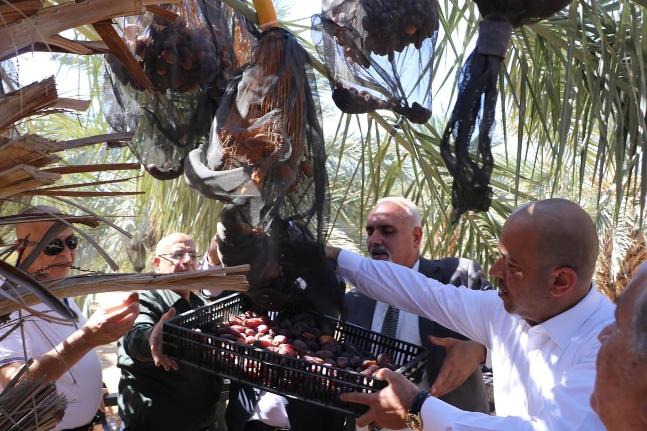 أريحا 11-9-2024 وفا- افتتح محافظ أريحا والاغوار حسين حمايل ووزير الزراعة رزق سليمية، اليوم الأربعاء، موسم قطف التمور.