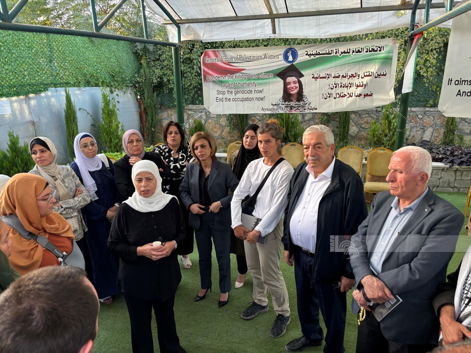 نابلس 11-9-2024 وفا- أقامت البلدية والمؤسسات المحلية في بلدة بيتا جنوب نابلس، مساء اليوم الأربعاء، بيت عزاء للمتضامنة الأميركية التركية الشهيدة عائشة-نور إيغي، التي قتلتها قوات الاحتلال الإسرائيلي في البلدة يوم الجمعة الماضي.