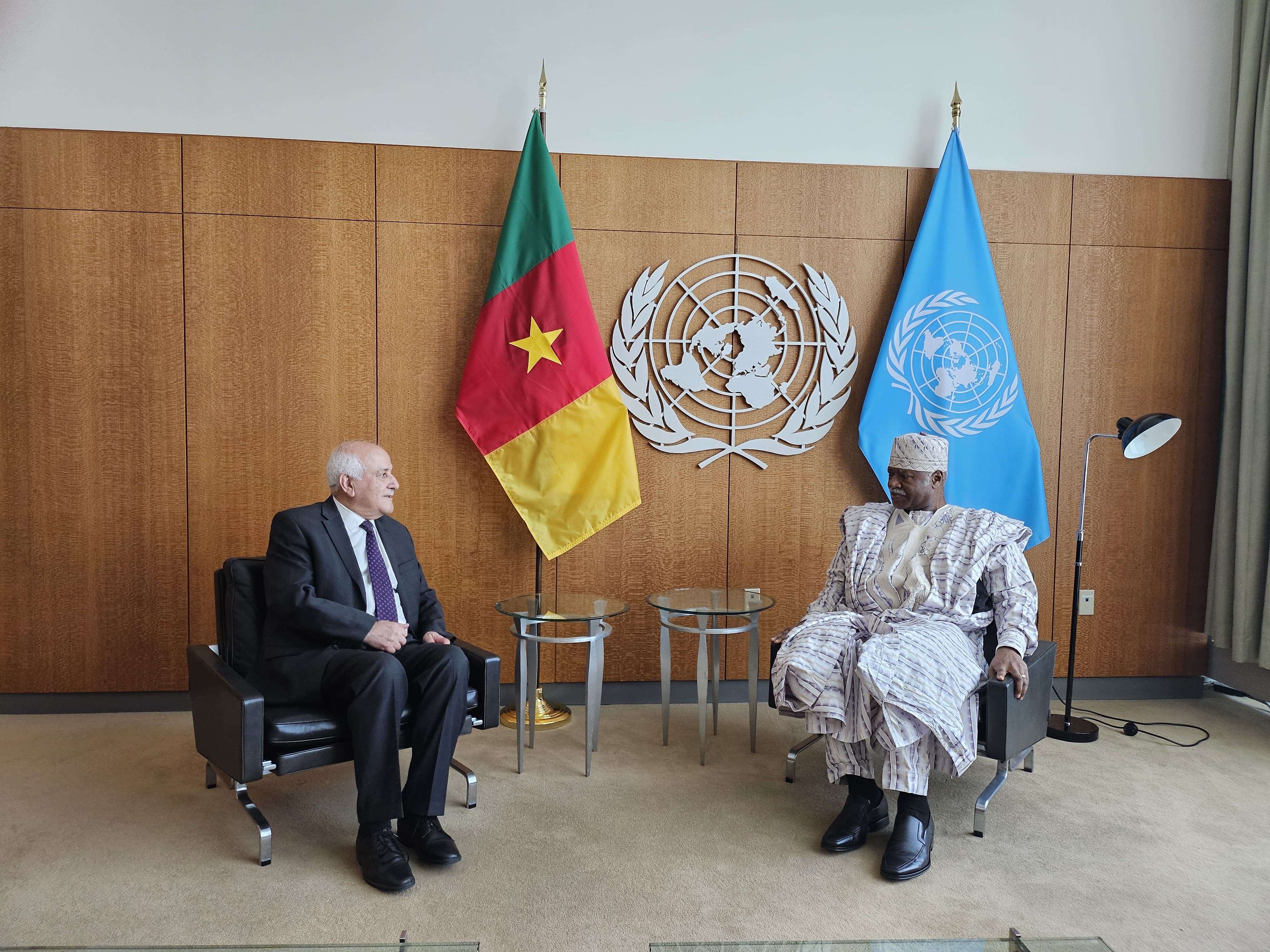 نيويورك 14-9-2024 وفا- عقد سفير دولة فلسطين لدى الأمم المتحدة رياض منصور، اجتماعه الرسمي الأول مع رئيس الجمعية العامة الجديد فلمون يانج، في مقره في الأمم المتحدة، وذلك بناء على طلبه.