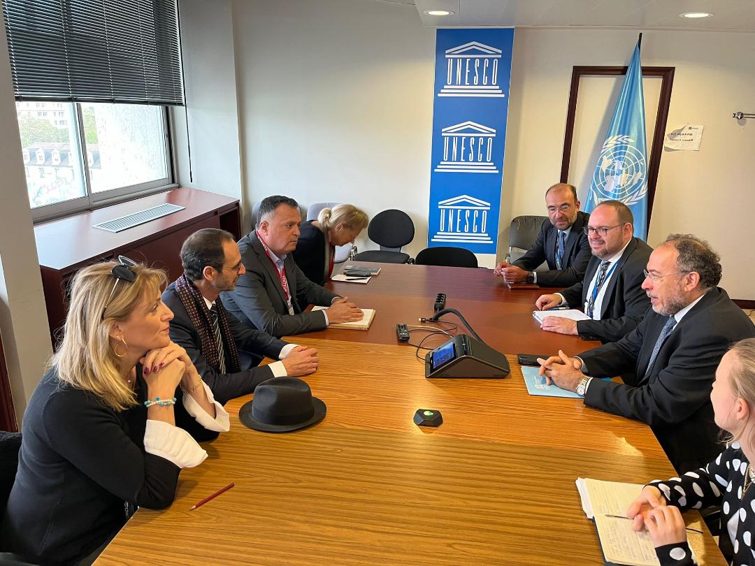 وحضر الاجتماع، كل من الدبلوماسيتين المستشارة هالة داود الطويل، والمستشارة القانونية لوفد اليونسكو جميلة حسن عريقات.
