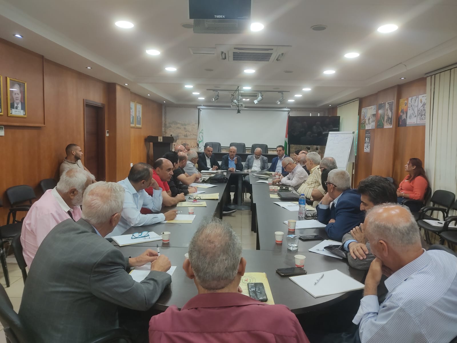 رام الله 2-9-2024 وفا- عقد الاتحاد العام للكتاب والأدباء الفلسطينيين لقاءً تشاوريا، في قاعة منظمة التحرير، مع المؤسسات والشركاء، بحضور عضو اللجنة التنفيذية لمنظمة التحرير، رئيس دائرة التنظيمات الشعبية واصل أبو يوسف، في سياق التحضيرات لإطلاق الجبهة الثقافية العالمية لدعم فلسطين.