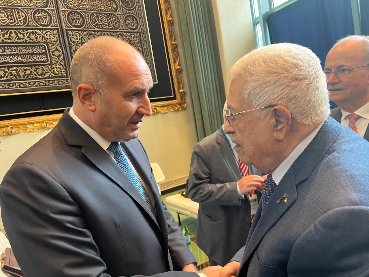 نيويورك 25-9-2024 وفا- التقى رئيس دولة فلسطين محمود عباس، اليوم الأربعاء، الرئيس البلغاري رومن راديف، على هامش مشـاركته في اجتماعات الدورة الـ79 للجمـعية العامة للأمم المتحدة، في نيويورك