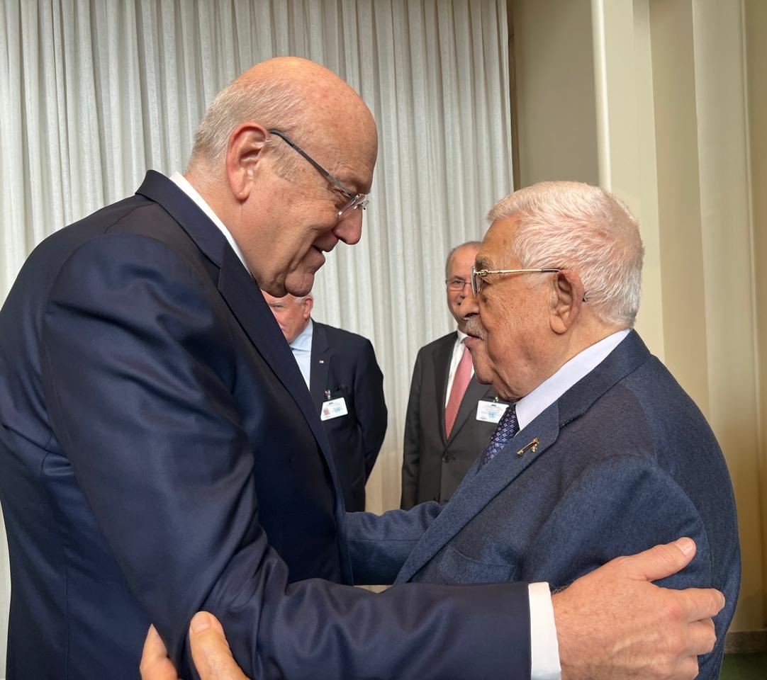 نيويورك 25-9-2024 وفا- التقى رئيس دولة فلسطين محمود عباس، اليوم الأربعاء، رئيس وزراء لبنان نجيب ميقاتي، على هامش مشـاركته في اجتماعات الدورة الـ 79 للجمـعية العامة للأمم المتحدة، في نيويورك.