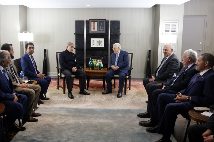 نيويورك 26-9-2024 وفا- اجتمع رئيس دولة فلسطين محمود عباس، اليوم الخميس، مع رئيس الوزراء الباكستاني محمد شهباز شريف، على هامش مشاركته في اجتماعات الدورة الـ79 للجمعية العامة للأمم المتحدة، في نيويورك.