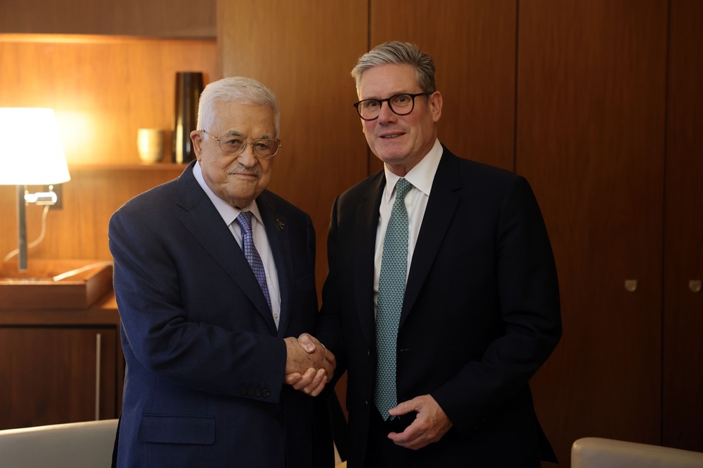 نيويورك 26-9-2024 وفا- اجتمع رئيس دولة فلسطين محمود عباس، اليوم الخميس، مع رئيس الوزراء البريطاني كير ستارمر، على هامش مشاركته في اجتماعات الدورة التاسعة والسبعين للجمعية العامة للأمم المتحدة، في نيويورك.