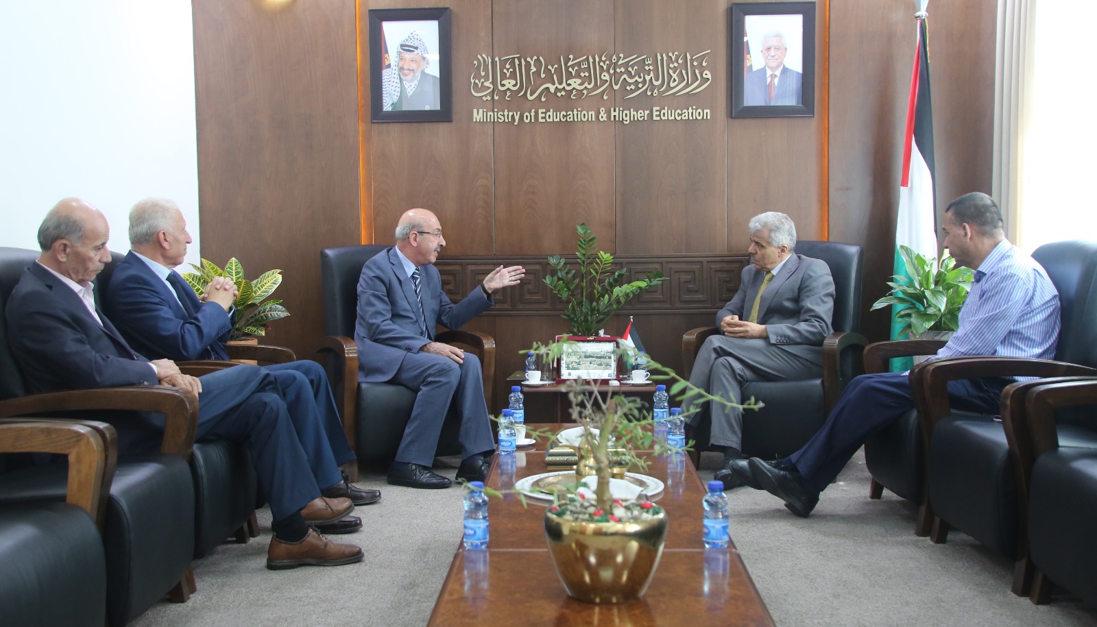 رام الله 5-9-2024 وفا- بحث وفد من مؤسسة ياسر عرفات برئاسة رئيس مجلس الإدارة أحمد صبح، مع وزير التربية والتعليم العالي أمجد برهم، في مكتبه بالوزارة في رام الله، سبل تعزيز التعاون المشترك بين المؤسسة والوزارة.