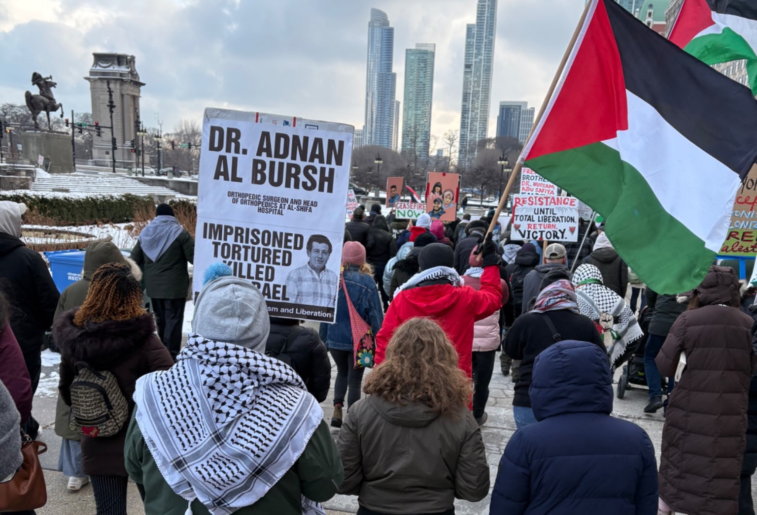 إلينوي 13-1-2025 وفا– تظاهر العشرات من أعضاء المنظمات الحقوقية والإنسانية، ونشطاء السلام في شوارع مدينة شيكاغو بولاية إلينوي الأميركية، للمطالبة بوقف "الإبادة الجماعية" بحق أبناء شعبنا في قطاع غزة.