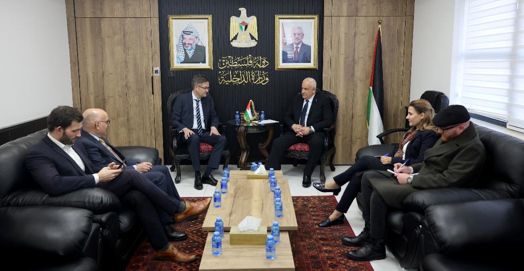 رام الله 13-1-2025 وفا- التقى وزير الداخلية اللواء زياد هب الريح، اليوم الاثنين، رئيس مكتب تمثيل المانيا لدى دولة فلسطين السفير اوليفر أوفتشا.
