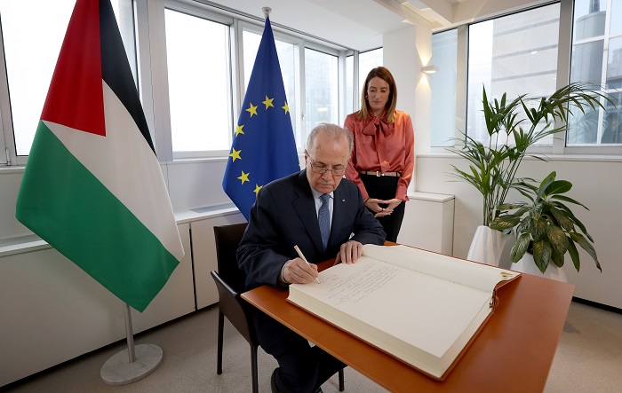 جاء ذلك خلال لقائه رئيسة البرلمان الأوروبي روبيرتا ميتسولا، اليوم الخميس، في مقر البرلمان الأوروبي في العاصمة البلجيكية بروكسل، حيث بحث الاجتماع العلاقات الثنائية، ومستجدات الأوضاع في فلسطين، والجهود المبذولة لتعزيز السلام العادل والدائم في المنطقة.