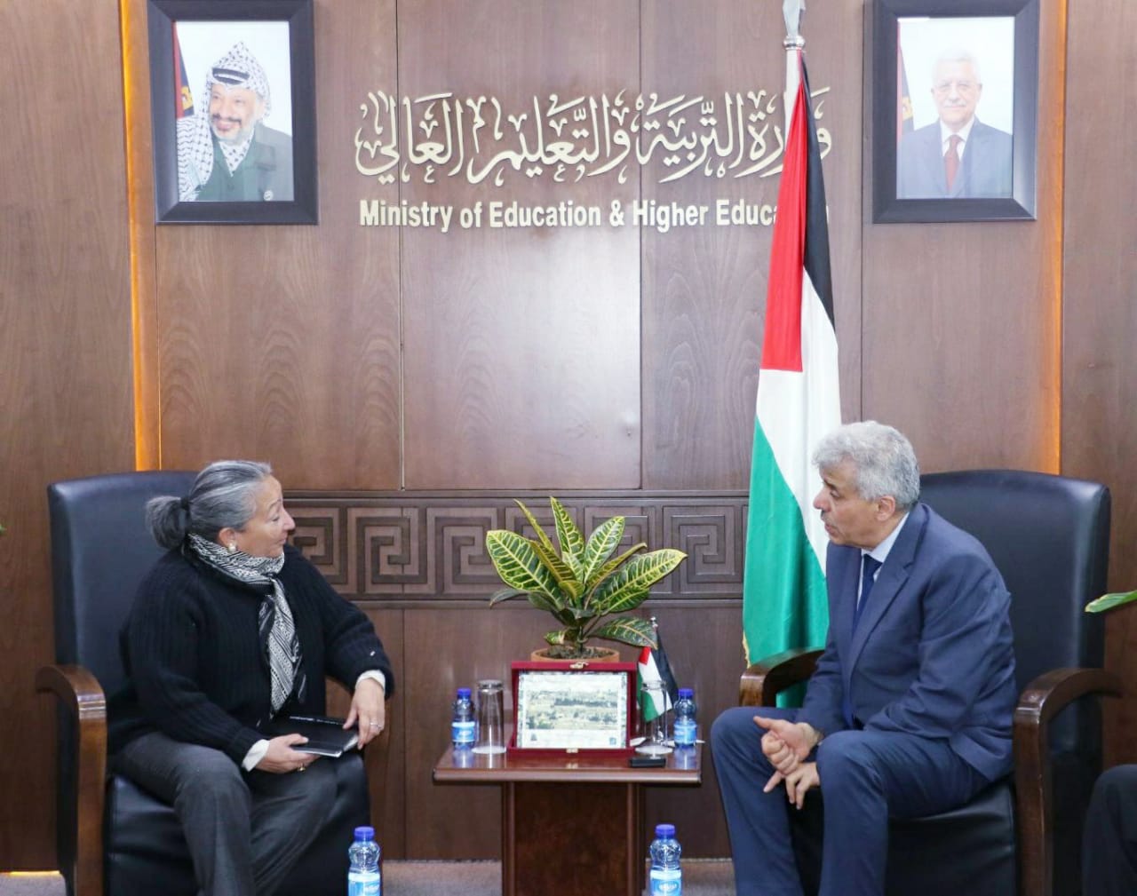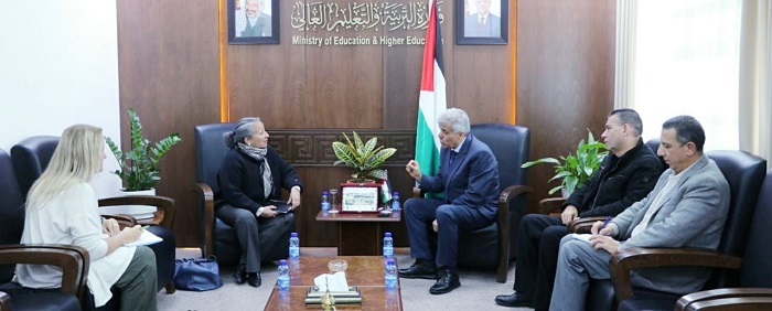 رام الله 24-1-2025 وفا- بحث وزير التربية والتعليم العالي أمجد برهم مع ممثلة اليونيسف في فلسطين جين غوف، سبل إغاثة وإسناد التعليم في قطاع غزة، ودراسة آفاق العمل في المرحلة المقبلة خاصة مع وقف عدوان الاحتلال الإسرائيلي على القطاع.