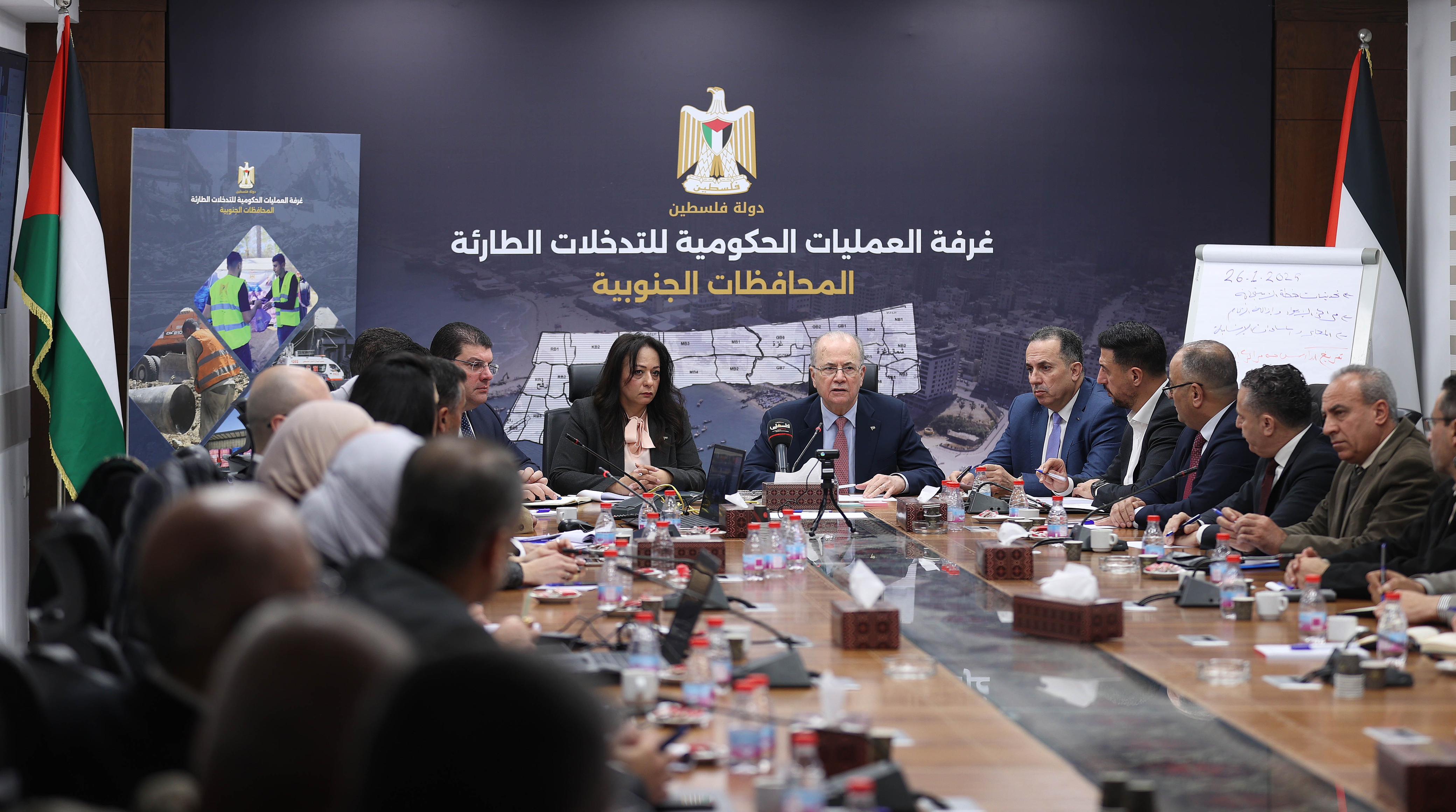 يذكر أن غرفة العمليات الحكومية تضم ممثلين عن أكثر من 20 مؤسسة رسمية، وتعمل عبر فرق عمل من مختلف الوزارات والهيئات في الضفة والقطاع، وتستعين بمؤسسات أخرى بحسب الاحتياج.