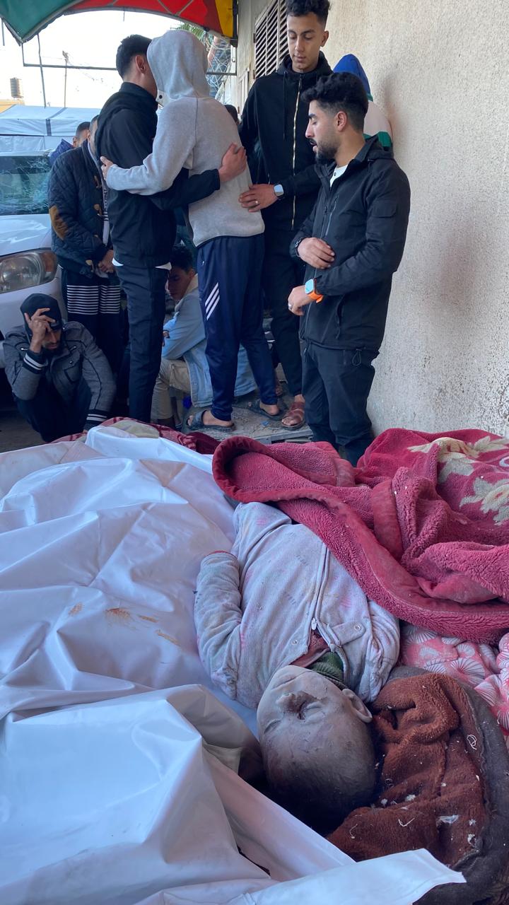 في صورة أخرى من صور الفاجعة التي يعيشها قطاع غزة منذ عام ونيف، حيث وفي المستشفى ذاته يبكي الزملاء الصحفيون الزميل عمرو الديراوي، الذي استشهد مع والديه وشقيقه الأصغر كرم، في غارة جوية، استهدفت منزلهم في قرية الزوايدة وسط القطاع، جاء ذلك بعد ساعات من أدائه صلاة الجنازة على جثمان شقيقه محمد الذي استشهد برفقة 8 مواطنين على الأقل في غارة استهدفتهم على شارع صلاح الدين في القرية ذاتها.