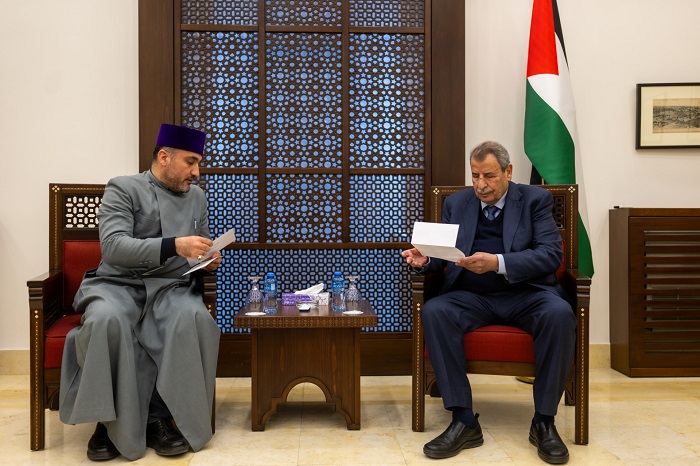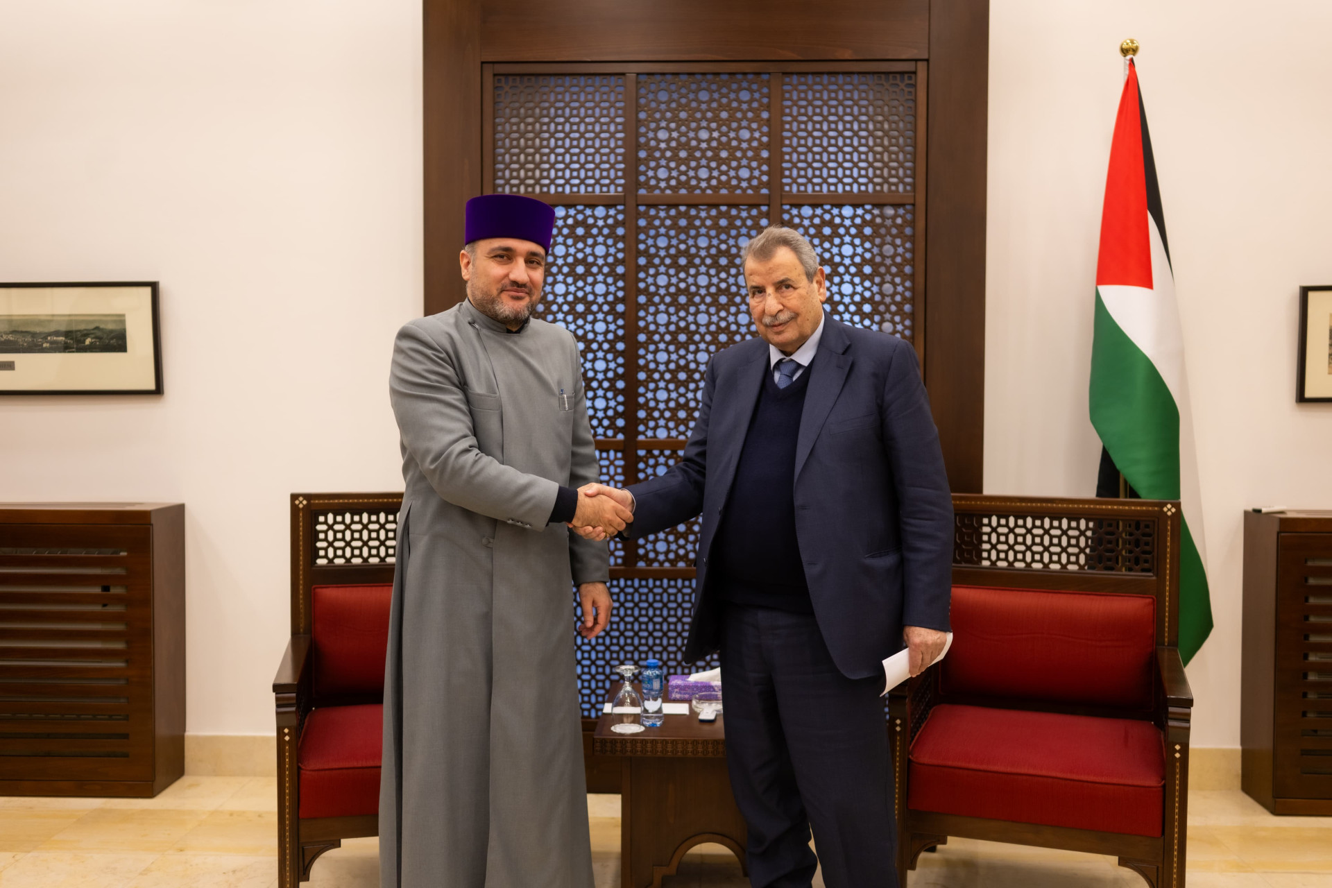 بيت لحم 5-1-2025 وفا- نيابة عن رئيس دولة فلسطين محمود عباس، تسلم عضو اللجنة التنفيذية لمنظمة التحرير الفلسطينية، رئيس اللجنة الرئاسية العليا لمتابعة شؤون الكنائس في فلسطين، رمزي خوري، اليوم الأحد، دعوة لحضور قداس عيد الميلاد المجيد للأرمن الأرثوذكس، من رئيس الوفد الأرمني، نيافة المطران كورليون بغداساريان، وذلك خلال لقاء عقد في قصر الرئاسة ببيت لحم.