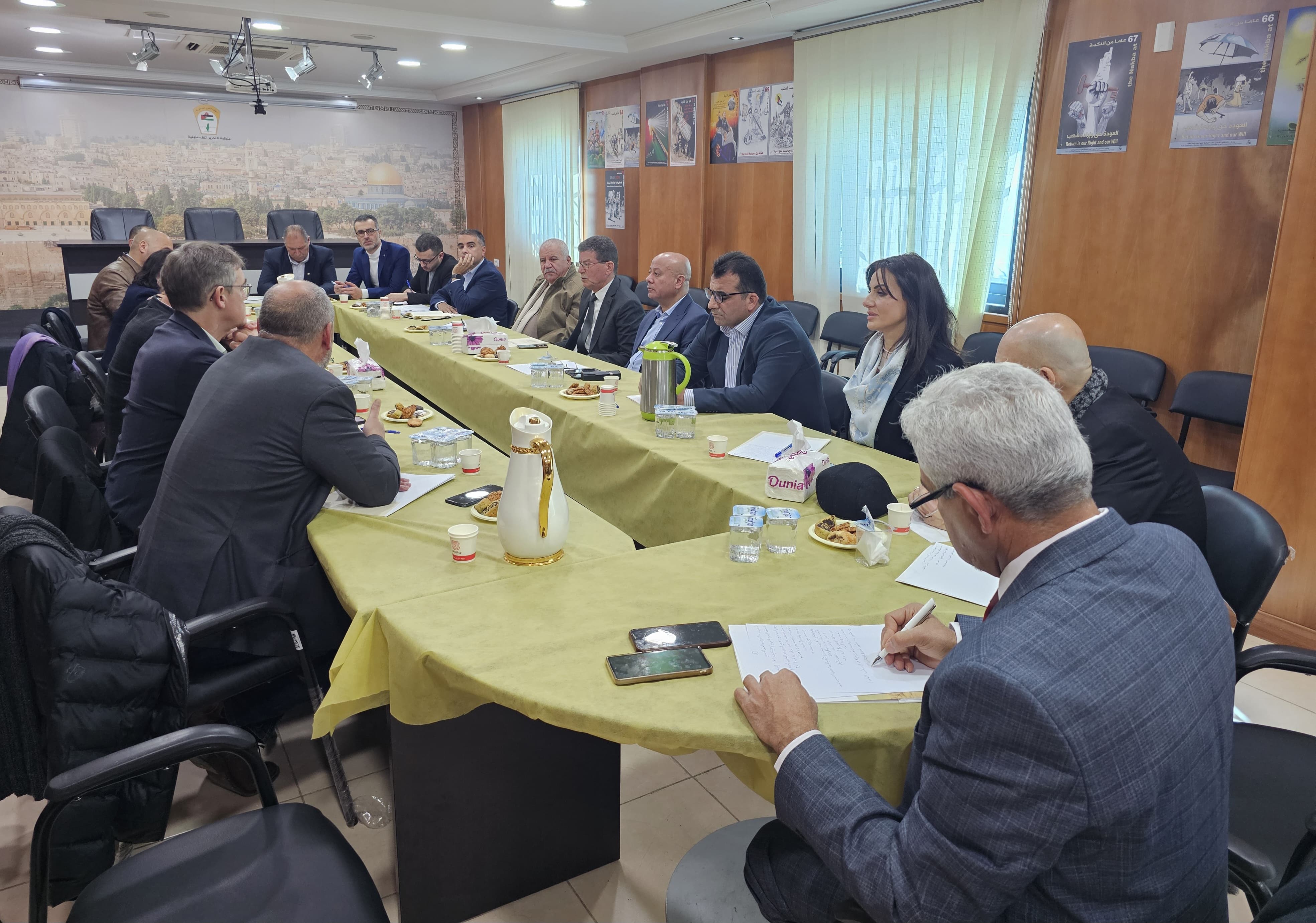 كما أطلع منسق عام دائرة امانة السر في منظمة التحرير ثائر نخلة، الوفد على مهام المنظمة، والتي تحتوي على 14 دائرة تقدم خدماتها للشعب الفلسطيني في فلسطين وحول العالم، وهي البيت المعنوي الذي اكتسب شرعيته كونه يمثل أحد حركات التحرر التي تطالب بتحرير الشعب الفلسطيني ونيله الحرية والاستقلال.