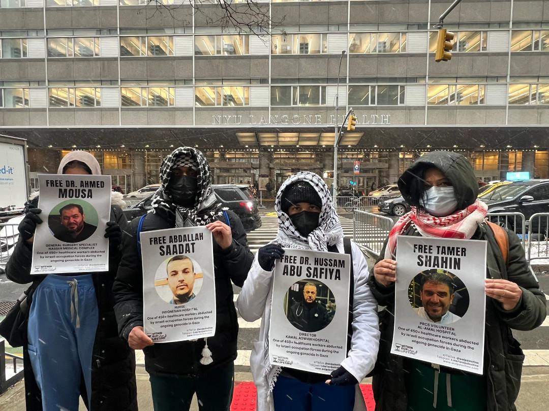 نيويورك 8-1-2025 وفا- نظم العشرات في مدينة نيويورك، وقفة للمطالبة بإطلاق سراح الأطباء والعاملين في القطاع الصحي الذين اعتقلوا خلال عدوان الاحتلال الإسرائيلي المتواصل على قطاع غزة.