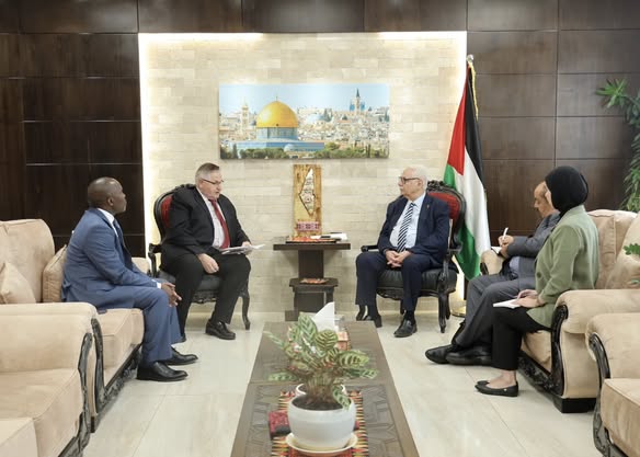 رام الله 12-10-2025 وفا- بحث وزير الصحة، ماجد أبو رمضان، اليوم الأحد في مكتبه برام الله، مع نائب المدير التنفيذي لصندوق الأمم المتحدة للسكان (UNFPA) أندرو سابرتون، دعم القطاع الصحي في فلسطين