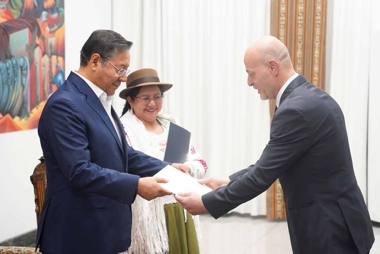 لاباز 15-10-2025 وفا- قدم السفير أحمد فخري الأسعد أبو الفواخر، اليوم الأربعاء، أوراق اعتماده للرئيس البوليفي لويس أرسي، سفيراً فوق العادة لدولة فلسطين لدى بوليفيا.