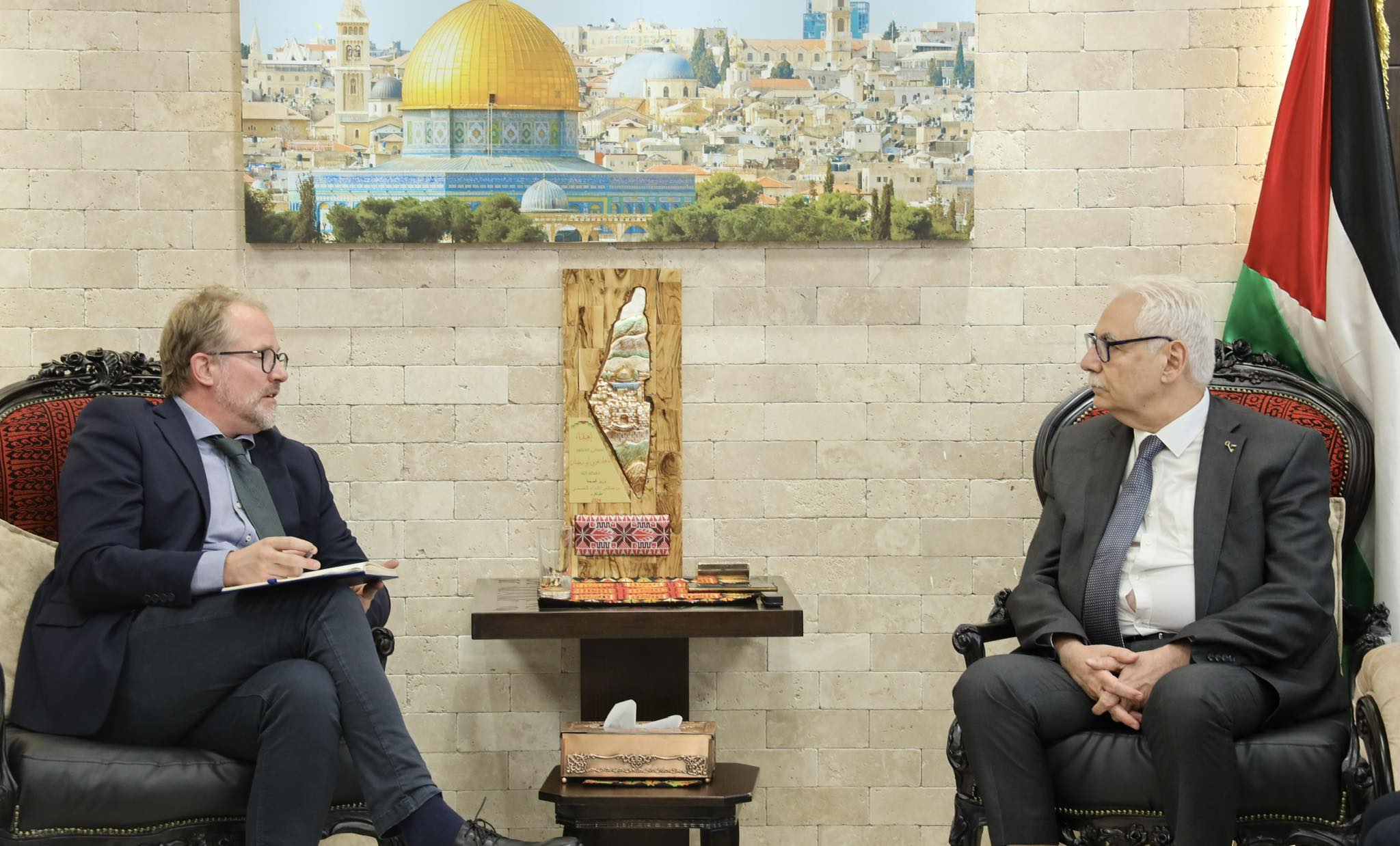 رام الله 22-10-2025 وفا- بحث وزير الصحة ماجد أبو رمضان، في مكتبه برام الله اليوم الأربعاء، مع ممثل مملكة النرويج لدى دولة فلسطين إريك بيرغراف، سبل تعزيز الدعم والتعاون المشترك.