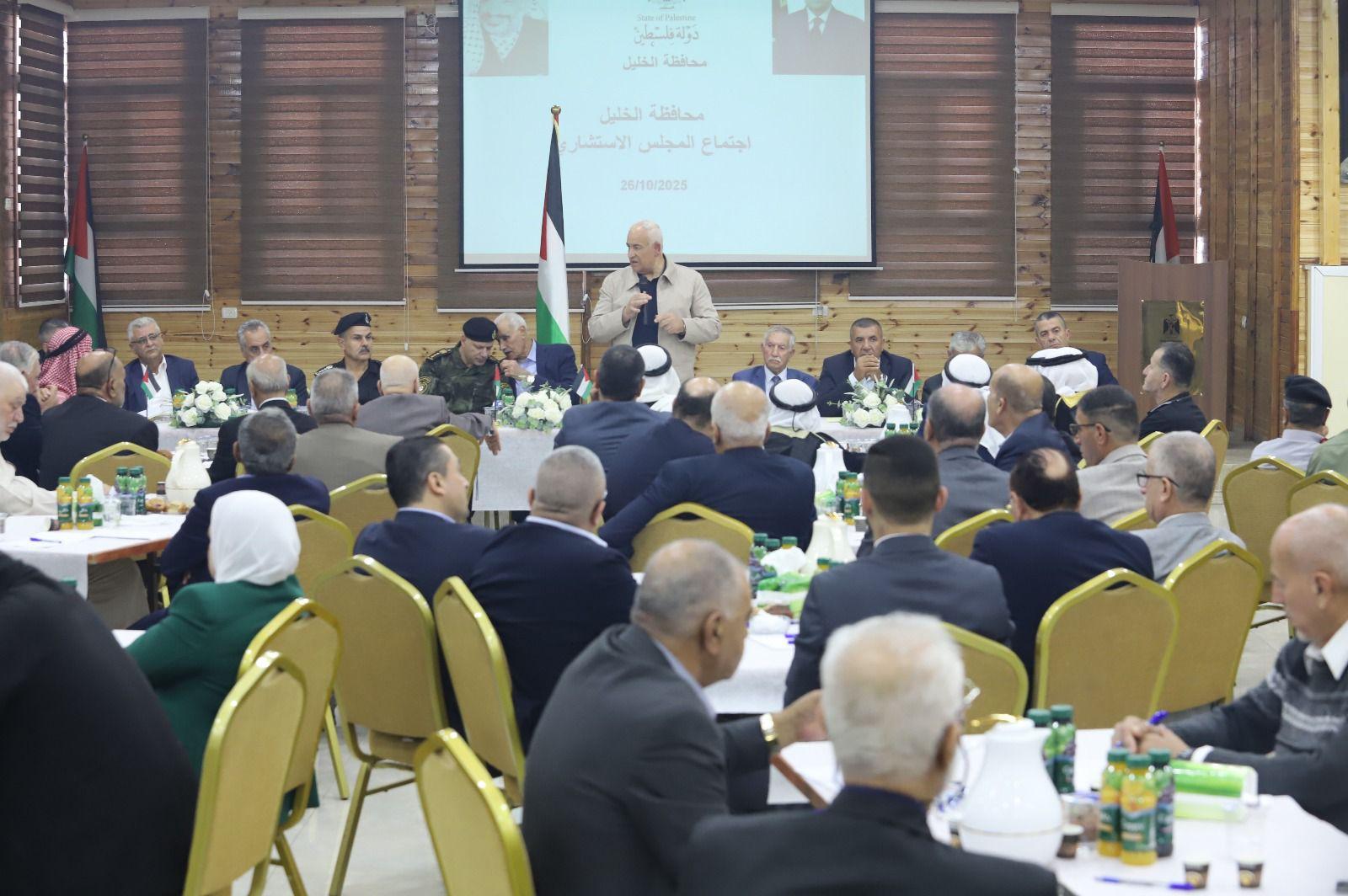 جاء ذلك خلال مشاركته في اجتماع المجلس الاستشاري لمحافظة الخليل، الذي عُقد برئاسة المحافظ اللواء خالد دودين، وبحضور مستشار الرئيس لشؤون المحافظات الفريق إسماعيل جبر، وعدد من القيادات الوطنية وممثلي المؤسسات الرسمية والأهلية.