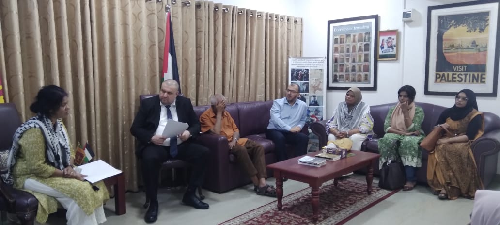 وقالت، إن الوفد جاء إلى السفارة للتعبير عن التضامن الشعبي الواسع في سريلانكا مع فلسطين، وللإعلان عن تنظيم مسيرة نسائية تنطلق من مقر السفارة باتجاه مكتب الأمم المتحدة في كولومبو، لتسليم رسالة إلى المنسق المقيم مارك أندرية، تطالب الأمم المتحدة بالتدخل العاجل لتثبيت وقف إطلاق النار، وإطلاق سراح الأسرى، وإدخال المساعدات الإنسانية إلى قطاع غزة.
