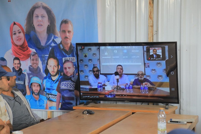 وقدم عدد من الزملاء الصحفيين في خان يونس ودير البلح ومحافظات الضفة شهادات مؤثرة حول حجم الانتهاكات والجرائم التي يعاشها الصحفيون الفلسطينيون خاصة في زمن الإبادة الإسرائيلية بعد تشرين الأول/أكتوبر 2023.