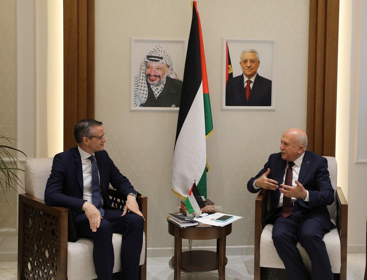 رام الله 9-10-2025 وفا- بحث وزير الاقتصاد الوطني محمد العامور اليوم الخميس، مع ممثل برامج الاتحاد الأوروبي في فلسطين سبل تطوير التعاون المشترك لدعم الاقتصاد الفلسطيني، خاصة في مجالات التحول الرقمي وتمكين المنشآت الصغيرة والمتوسطة.