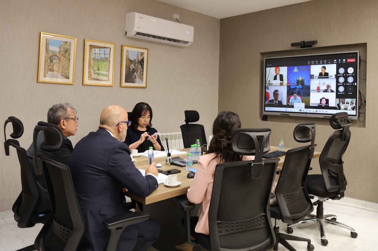 رام الله 13-11-2025 وفا- ترأس وزير التخطيط والتعاون الدولي إسطفان سلامة والمدير العام لإدارة شؤون الشرق الأوسط وإفريقيا في وزارة الخارجية اليابانية كِيئيشي إيواموتو، اجتماعًا إلكترونيا تنسيقيا على المستوى التنفيذي لمؤتمر التعاون بين دول شرق آسيا من أجل تنمية فلسطين (CEAPAD) والذي خصص لمتابعة تنفيذ خطة عمل كوالالمبور التي أقرها الاجتماع الوزاري الرابع للمؤتمر في تموز الماضي.