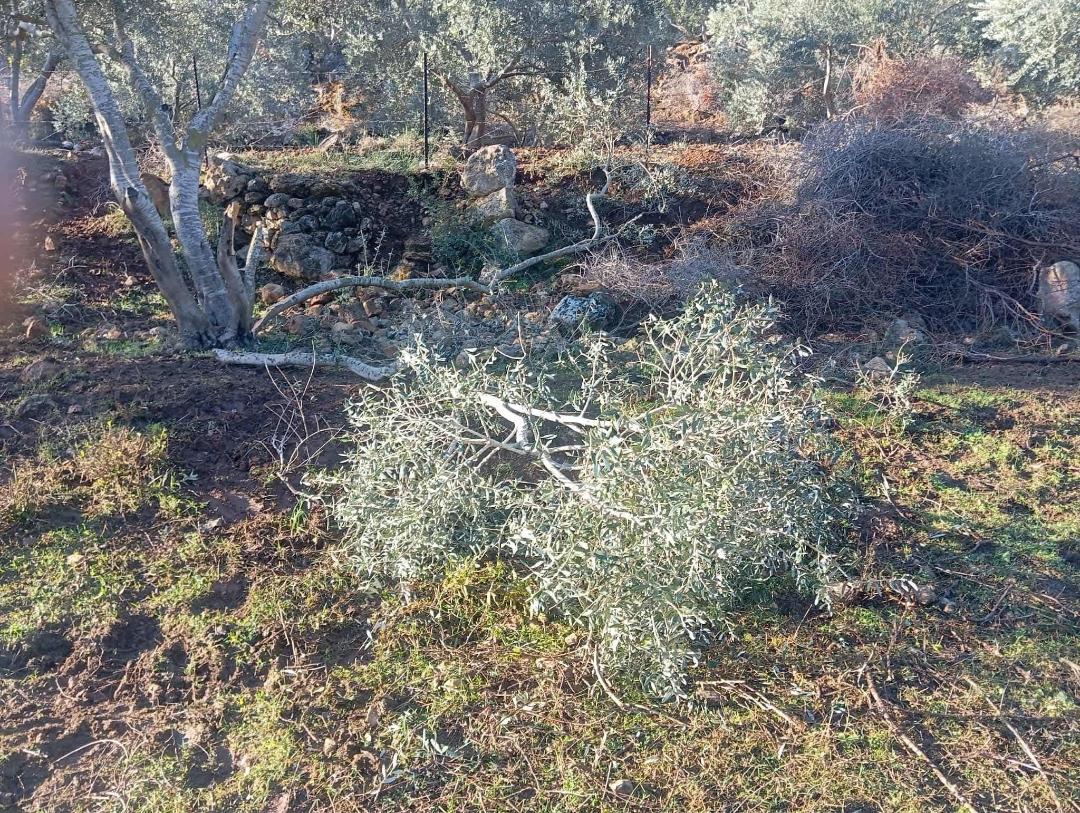 سلفيت 27-11-2025 وفا- أقدَم مستعمرون، اليوم الخميس، على تقطيع أشجار زيتون وحمضيات، تعود ملكيتها للمزارع عبد الرزاق خالد منصور، في منطقة واد قانا شمال غرب سلفيت.