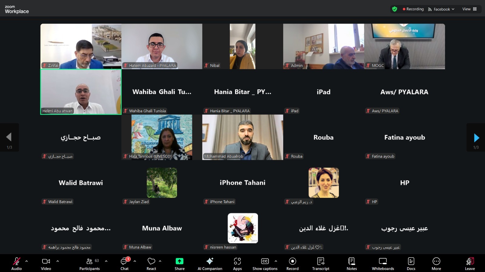 وأدار اللقاء، مسؤول العلاقات العامة، مشرف برنامج التربية الإعلامية والمعلوماتية في "بيالارا" الإعلامي حلمي أبو عطوان، الذي أكد بدوره أهمية بناء حراك إقليمي عربي موحد لتعزيز التربية الإعلامية والمعلوماتية، وتبادل الخبرات بين الدول والمؤسسات.