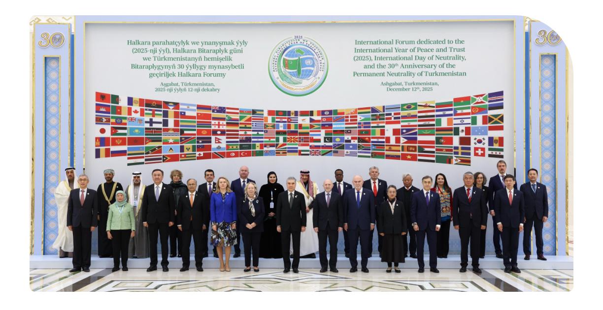 عشق آباد 13-12-2025 وفا- شاركت دولة فلسطين ممثلة بسفيرتها لدى تركمانستان، رنا أبو حجلة، في أعمال منتدى السلام والثقة الدولي الذي عُقد في العاصمة عشق آباد، بحضور رؤساء دول وحكومات، وبرلمانيين، وقادة منظمات ومؤسسات دولية، والسلك الدبلوماسي المعتمد لدى تركمانستان، وذلك لمناسبة إحياء الذكرى السنوية الـ30 لحالة الحياد الدائم لتركمانستان، واليوم الدولي للحياد، وإعلان سنة 2025 "العام الدولي للسلام والثقة".