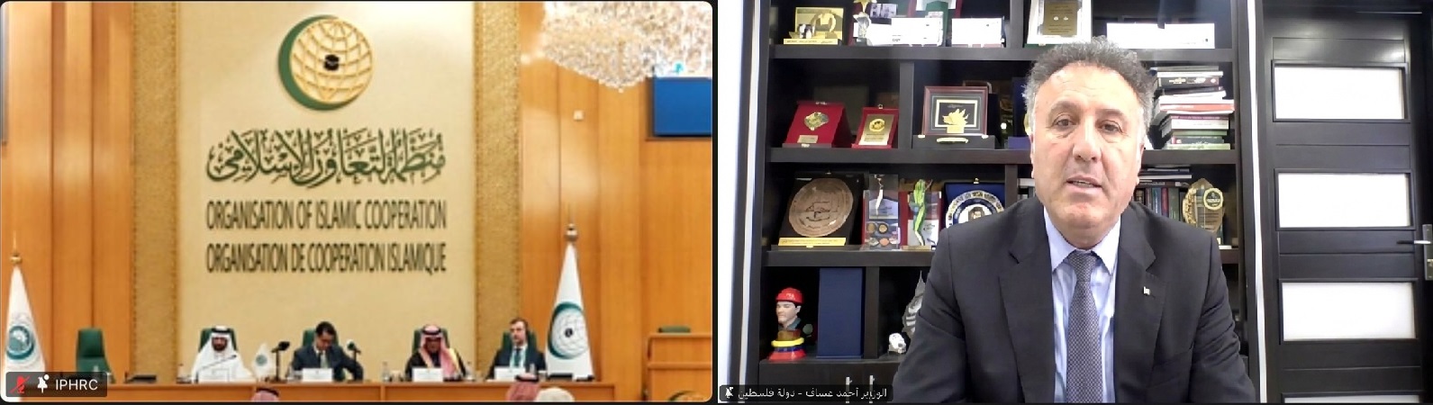 وشارك في افتتاح جلسة الحوار الرفيعة المستوى الأمين العام لمنظمة التعاون الإسلامي حسين إبراهيم طه، ورئيس الهيئة الدائمة المستقلة لحقوق الإنسان حاجي علي أجيكغول، والمدير التنفيذي للهيئة هادي بن علي اليامي.