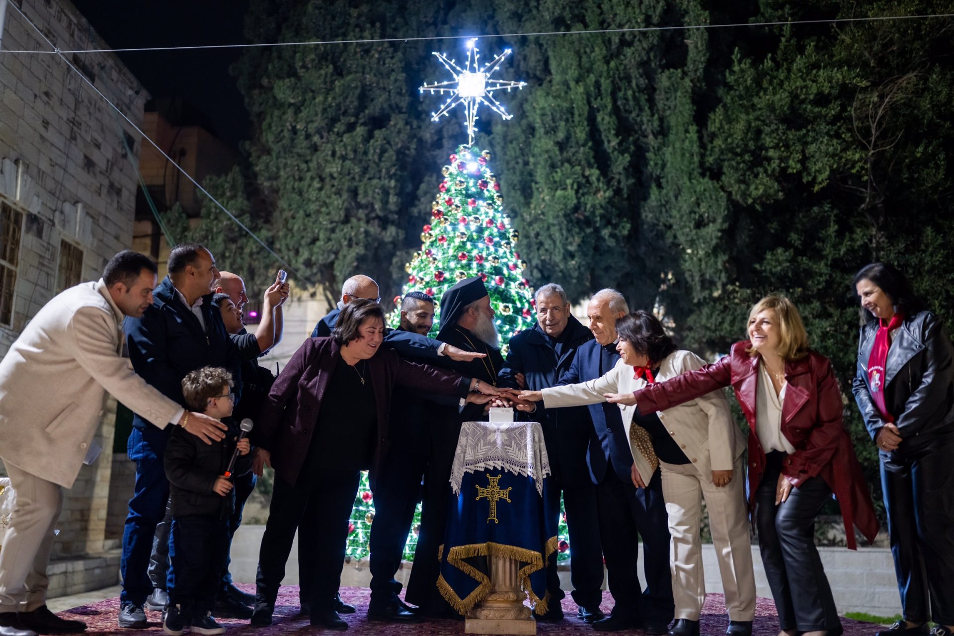 وأكد أن إضاءة الشجرة تمثل رمزًا لإضاءة نور الأمل والرجاء رغم المعاناة، كما وجّه رسالة تضامن إلى أطفال غزة، قائلًا: "قلوبنا معكم ونصلي من أجلكم".
