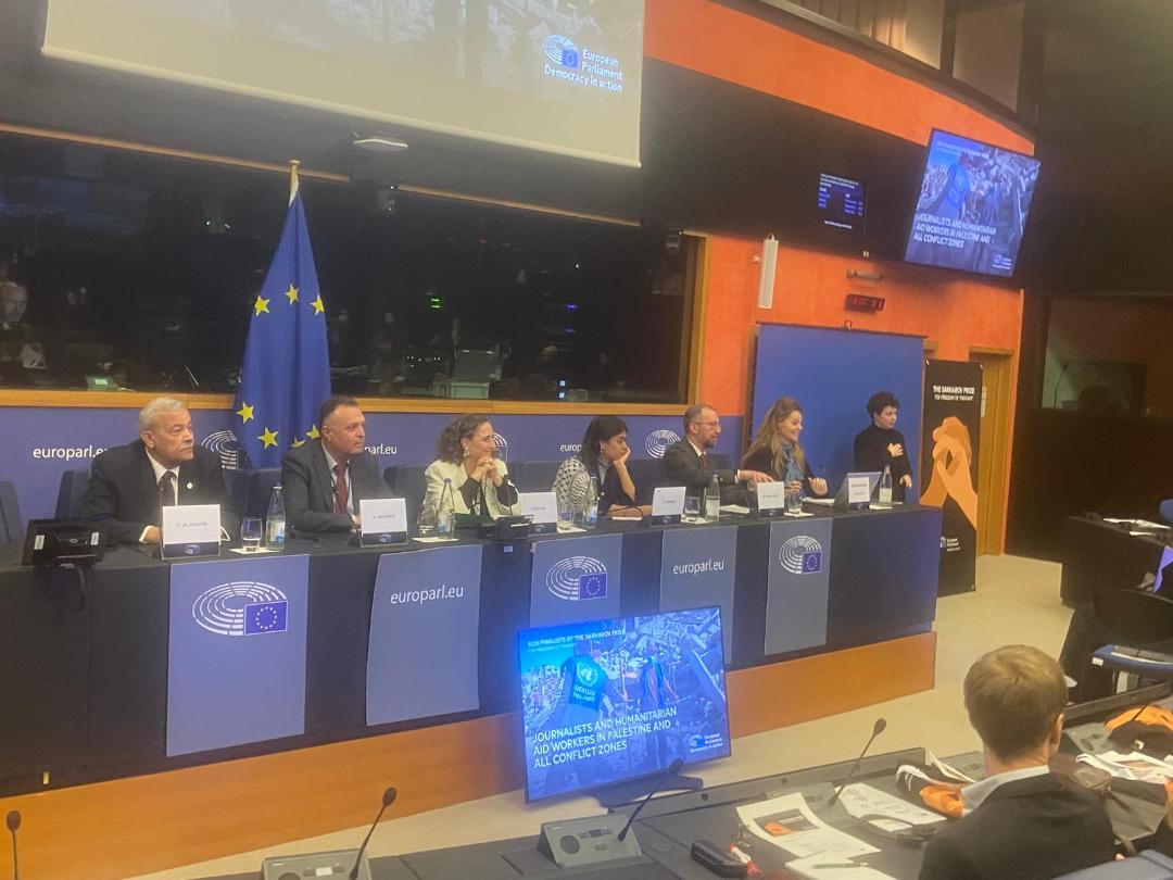 ستراسبورغ 20-12-2025 وفا- شاركت نقابة الصحفيين الفلسطينيين، ممثَّلة بنقيب الصحفيين ناصر أبو بكر، ورئيس فرع النقابة في أوروبا يوسف حبش، في حفل جائزة ساخاروف لحرية الفكر لعام 2025، الذي أُقيم في مدينة ستراسبورغ الفرنسية.
